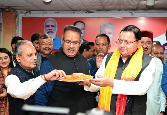 भाजपा मे जश्न, धामी बोले मोदी की गारंटी है चुनाव के नतीजे