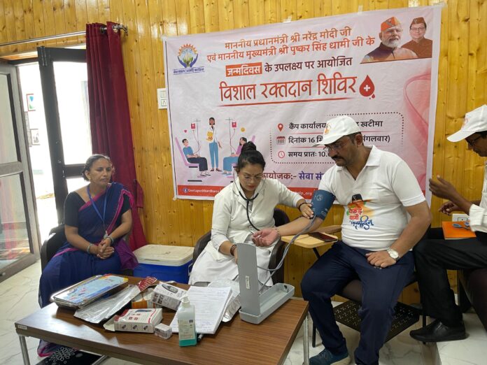 प्रधानमंत्री नरेंद्र मोदी एवं मुख्यमंत्री पुष्कर सिंह धामी के जन्मदिवस के अवसर पर उपजिला चिकित्सालय टनकपुर (चम्पावत) में सेवा संकल्प (धारणी) फाउंडेशन के तत्वावधान में रक्तदान शिविर का सफल आयोजन किया गया।