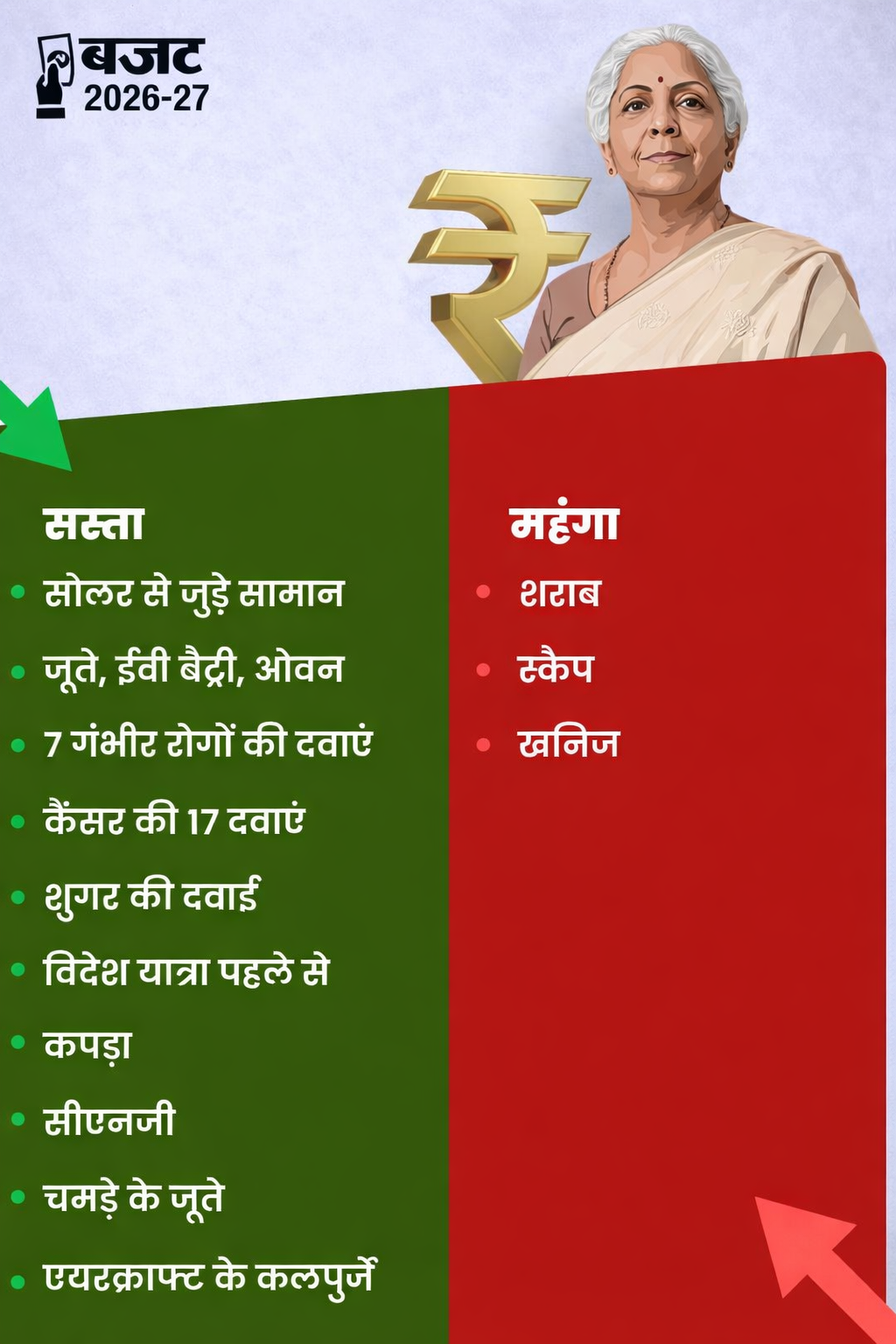 Budget 2026: क्या सस्ता हुआ और क्या महंगा? वित्त मंत्री ने किए एलान, देखें लिस्ट