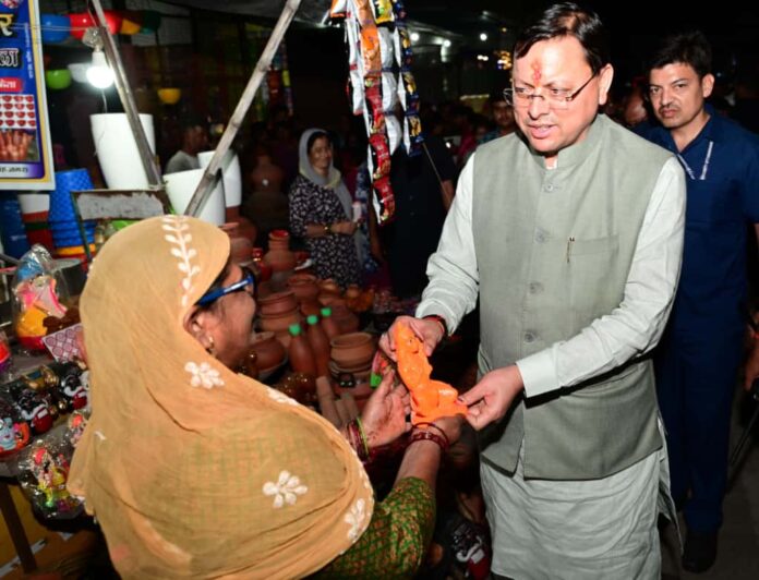 Deepawali 2025 wokal for lokal दीपावली केवल रोशनी और उल्लास का त्योहार नहीं, बल्कि आत्मनिर्भरता और स्वाभिमान का प्रतीक भी है। मुख्यमंत्री पुष्कर सिंह धामी ने अपने गृह क्षेत्र खटीमा में ‘स्वदेशी अपनाओ’ अभियान के अंतर्गत पारंपरिक मिट्टी के दीयों और स्थानीय उत्पादों की खरीदारी कर ‘वोकल फॉर लोकल’ का संदेश दिया।