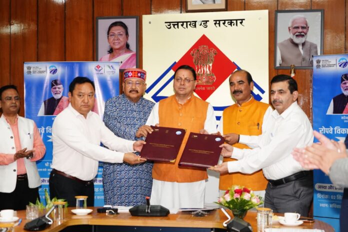 देहरादून, 2 सितंबर 2025: मुख्यमंत्री पुष्कर सिंह धामी की उपस्थिति में मंगलवार को सचिवालय में एक ऐतिहासिक समझौते पर हस्ताक्षर किए गए। पर्वतमाला परियोजना के अंतर्गत केदारनाथ और हेमकुंड साहिब में रोपवे के विकास को लेकर उत्तराखंड सरकार और नेशनल हाईवे लॉजिस्टिक्स मैनेजमेंट लिमिटेड (एनएचएलएमएल) के बीच यह एमओयू (MoU) संपन्न हुआ।