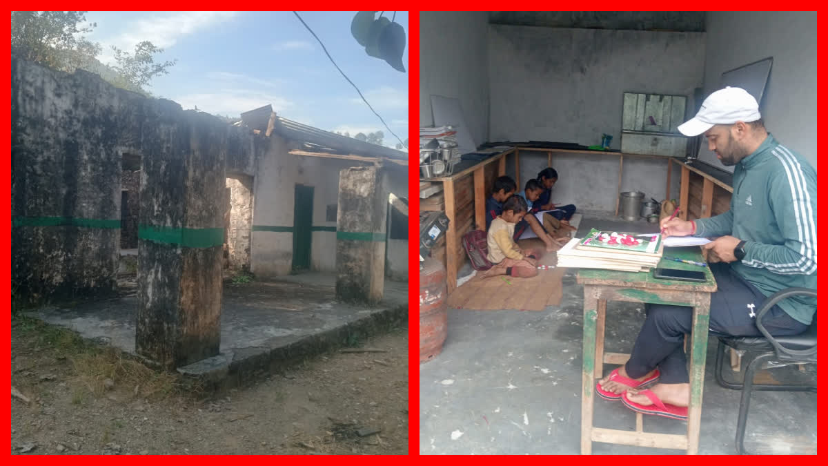 दुकान में पढ़ने को मजबूर हैं छात्र: इस स्कूल के बच्चे स्कूल की जगह किराए की दुकान में बैठकर पढ़ाने करने को मजबूर हैं. दरअसल आपदा के कारण दो साल पहले इस स्कूल का भवन रात में भरभराकर गिर पड़ा था. शुक्र था कि वो आपदा दिन में नहीं आई थी, वरना यहां मासूम की जान पर संकट आ जाता. हादसे के बाद भी सरकारी सिस्टम की नींद नहीं खुली.